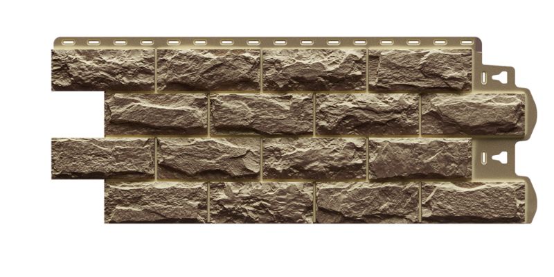 Фасадные панели оттенка «Шатель» неотличимы на вид от натуральной скальной породы. Высокотехнологичная окраска фактурного прочного материала позволяет достигнуть максимальной реалистичности.