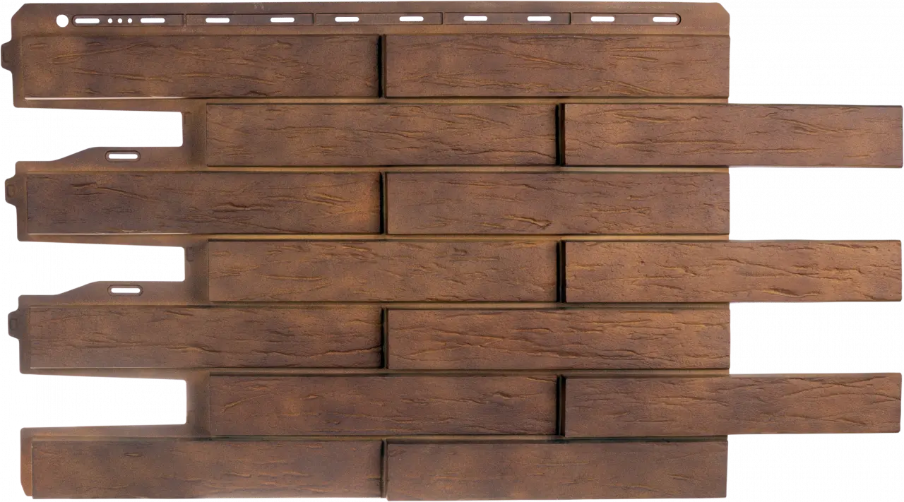Фасадные панели в 10 раз легче кирпича! Один метр фасадных панелей весит 1,3–2 кг*. Вес 1 м кирпичной кладки – 17,2 кг. Цокольным сайдингом можно облицевать любое здание, не увеличивая нагрузку на фундамент и несущие конструкции.