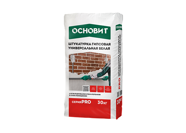 Гипсовая штукатурка ОСНОВИТ PRO предназначена для выравнивания стен и потолков в помещениях с нормальной влажностью.