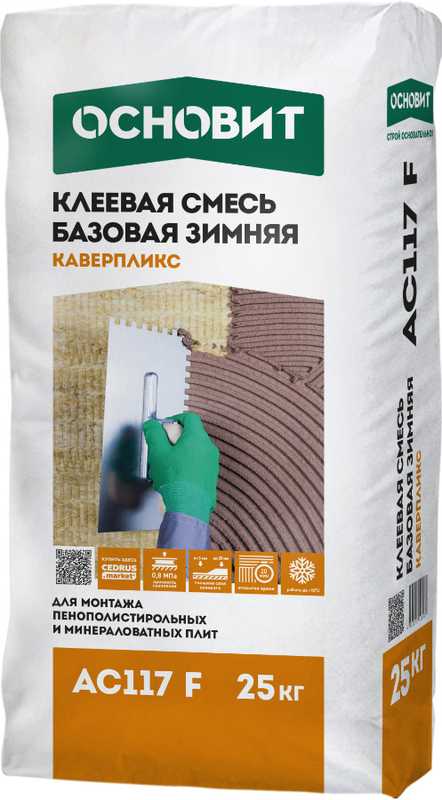 Зимняя клеевая смесь ОСНОВИТ КАВЕРПЛИКС АС117 F предназначена для создания клеевого слоя СФТК ОСНОВИТ при низких температурах окружающего воздуха от -10 до +10°C.