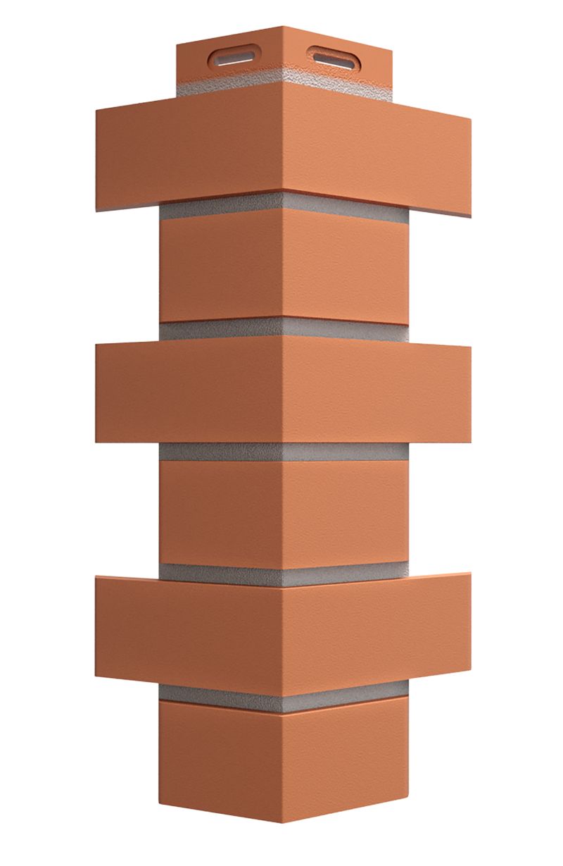 Фасадный угол используется для закрытия концов панелей на внешних углах дома. Имитирует фламандскую кладку и выпускается в цвет панелей.